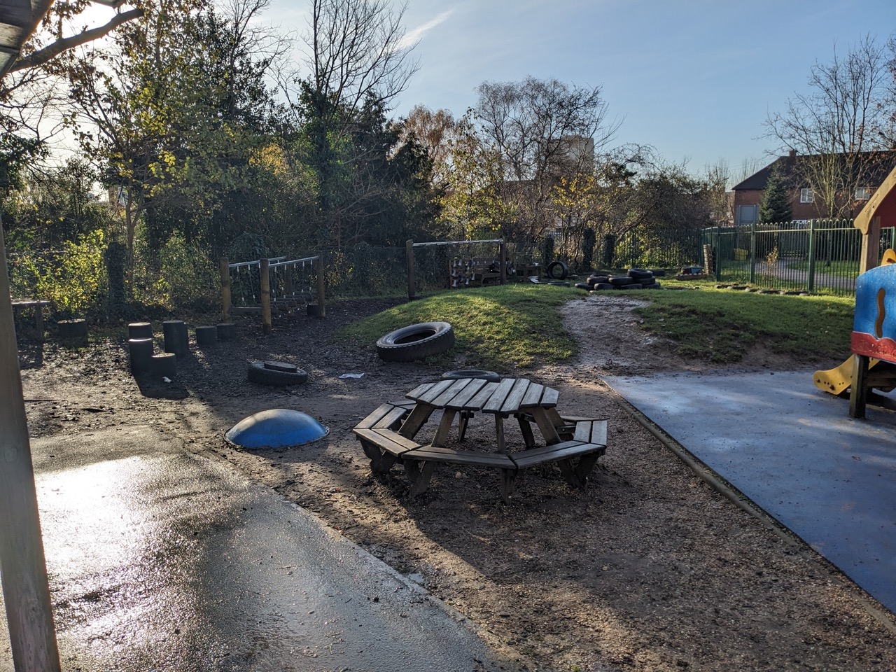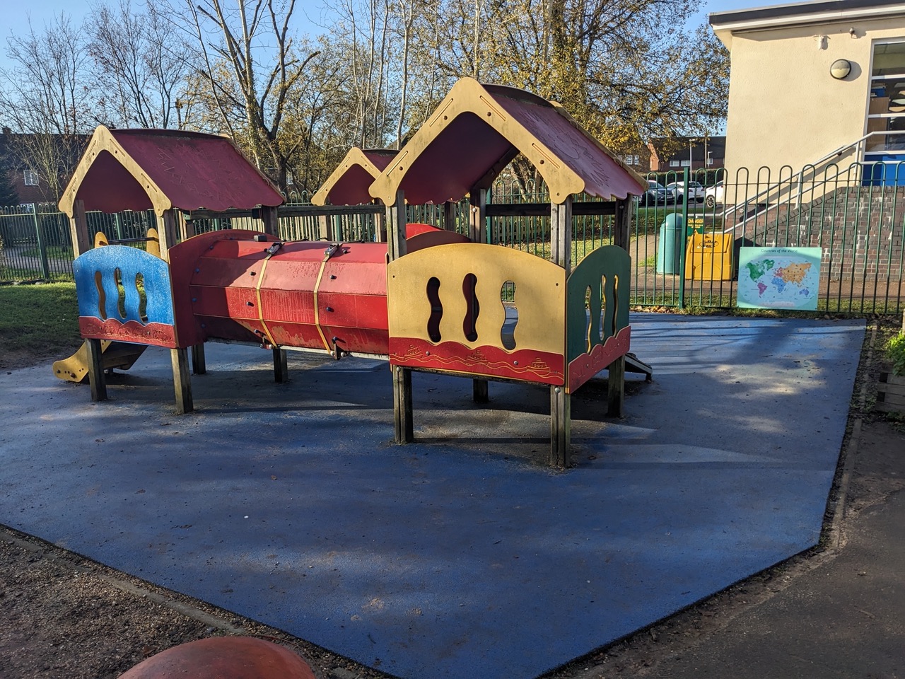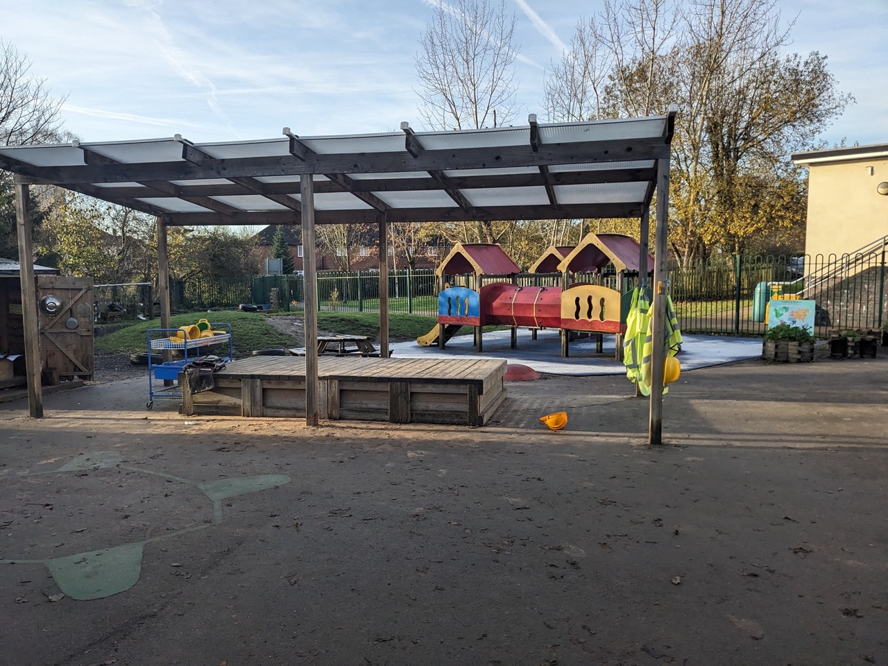 Beginning with their EYFS play area, it was in need of a complete refresh, with the key aims being to make sure we delivered on the 6 key areas of the EYFS curriculum, enabling continuous indoor/outdoor provision, and boosting all-weather access to the grass area in the background of the picture below.