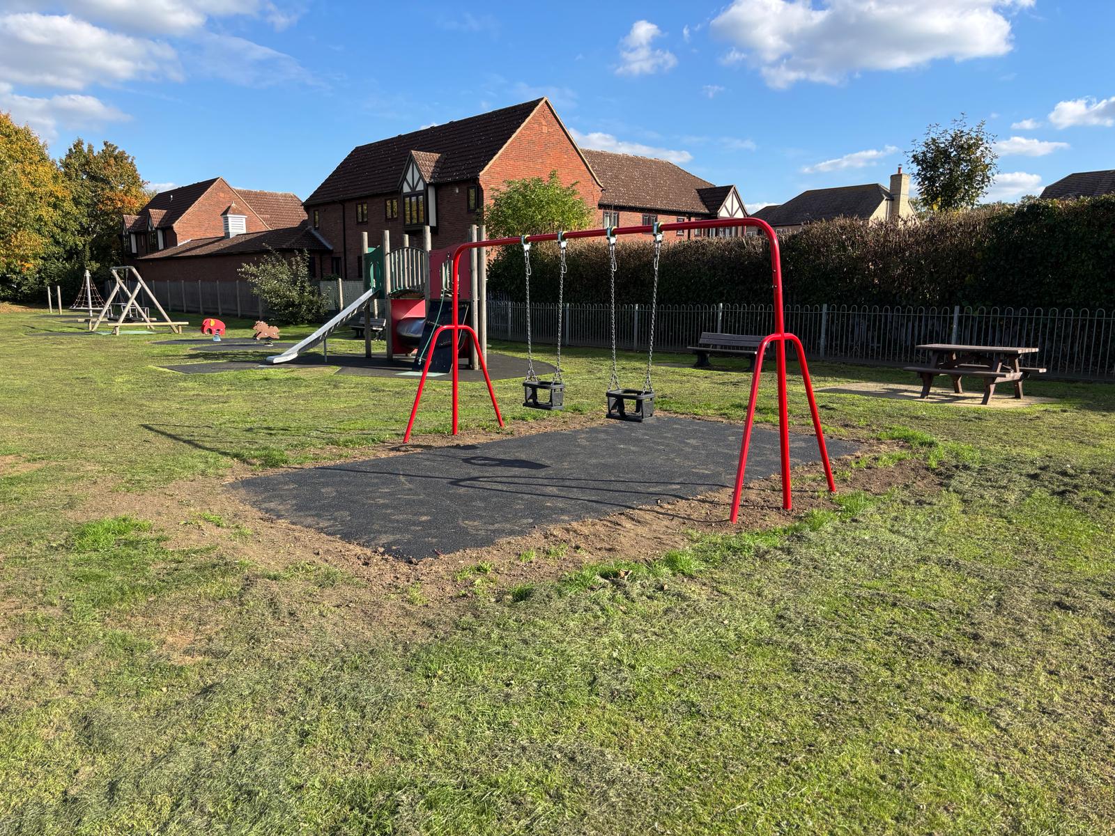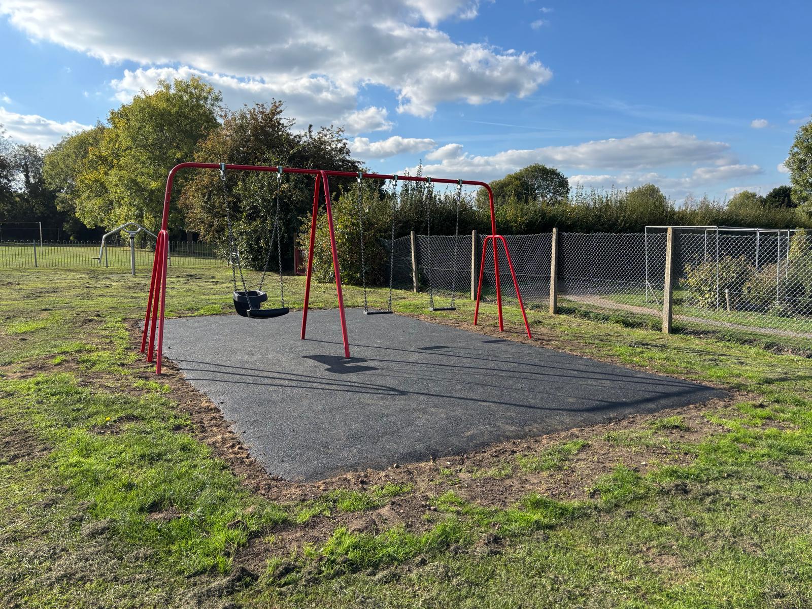 The brief included a new set of swings, including two flat seats for older children as well as a combi swing for little ones and parents and carers, all on new black wetpour rubber surfacing